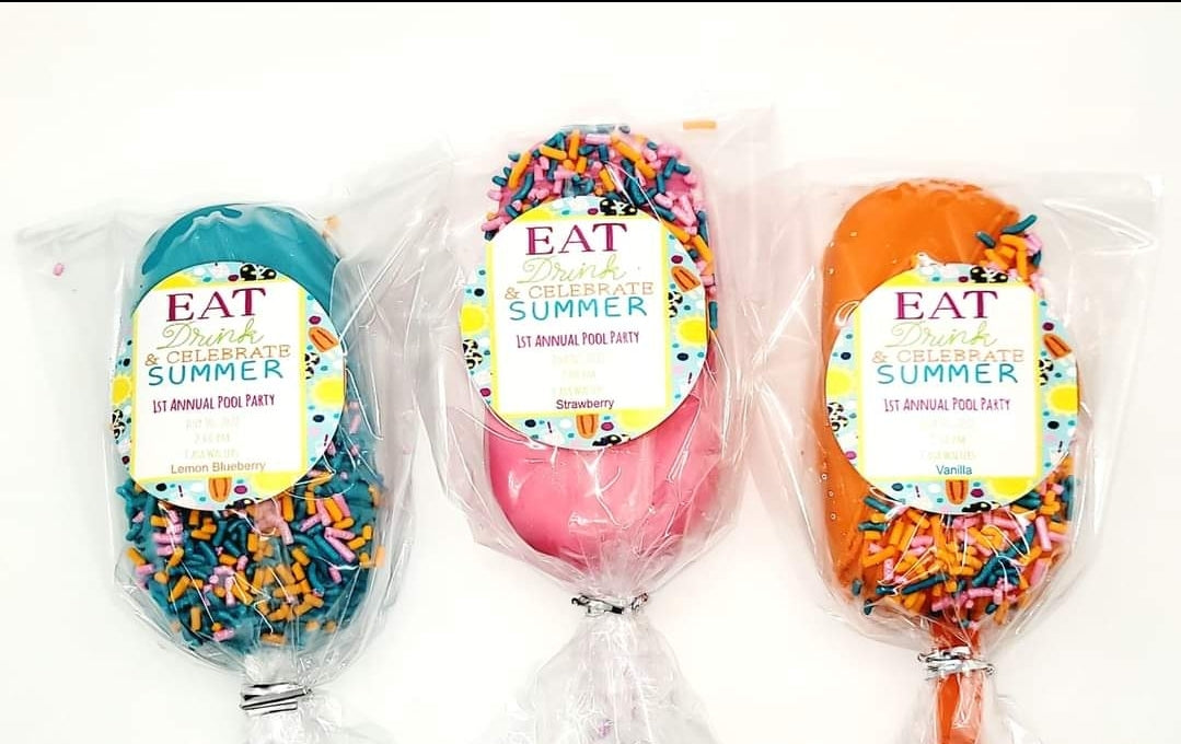 A cake/cheesecake popsicle is cake or cheesecake shaped into a popsicle and dipped in chocolate.